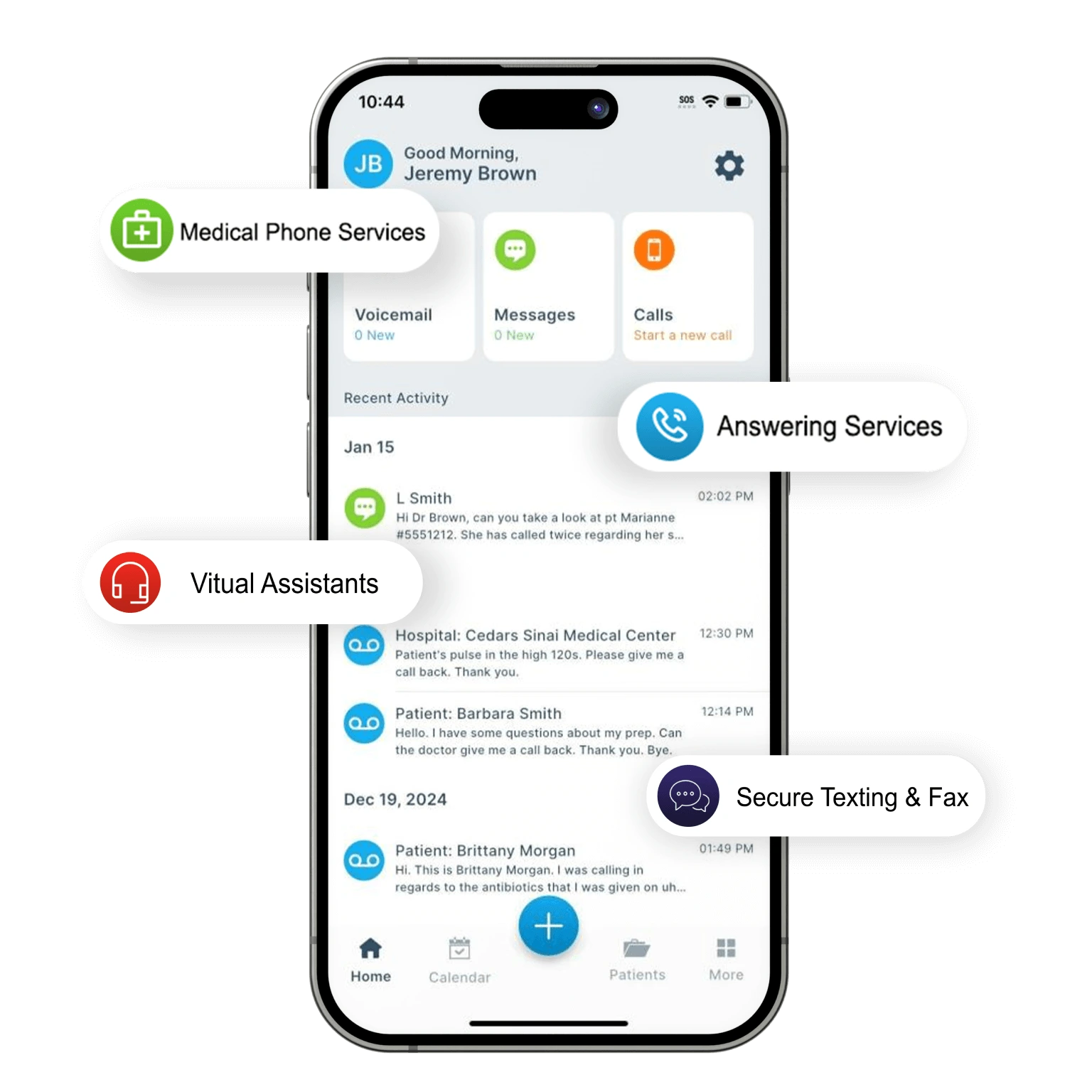 An automated, end-to-end HIPAA-compliant phone service that streamlines everything from call routing to secure patient text messaging services. Whether you're using our automated tools or getting support from a live medical virtual assistant, our healthcare communications platform simplifies your day and supports your staff.